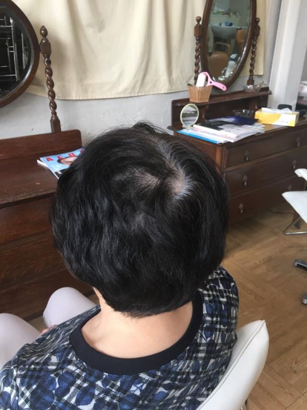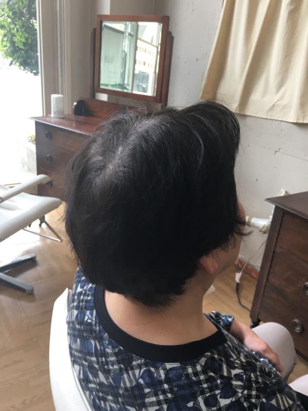 トップの根元が割れてしまい、余計に白髪が目立ってしまっていますね。何とかこの割れを解消してトップをふんわりとしたいと思いますが、