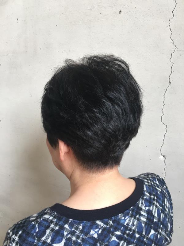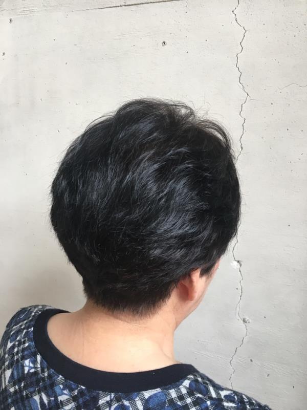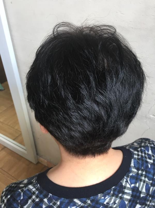 カット終了 です。カットの時間は割と早く終わって次は根元の白髪染めです。20分放置したらお流しです。 |