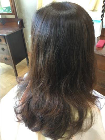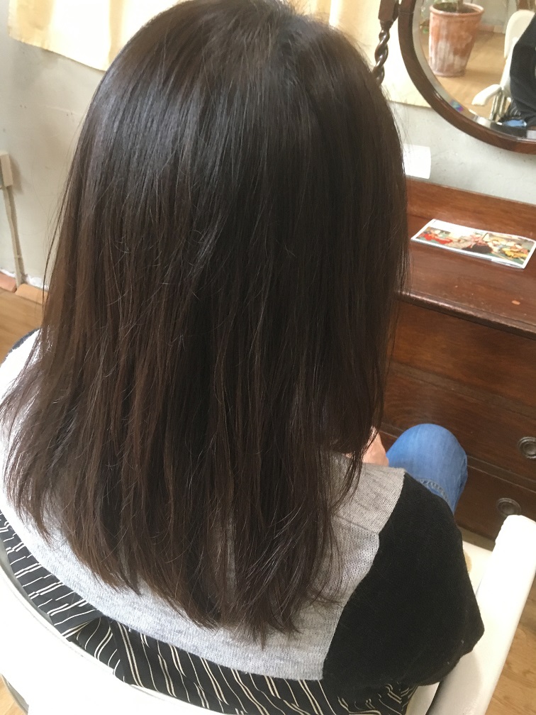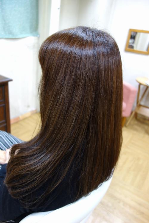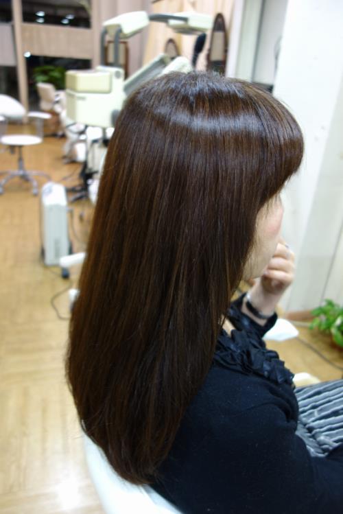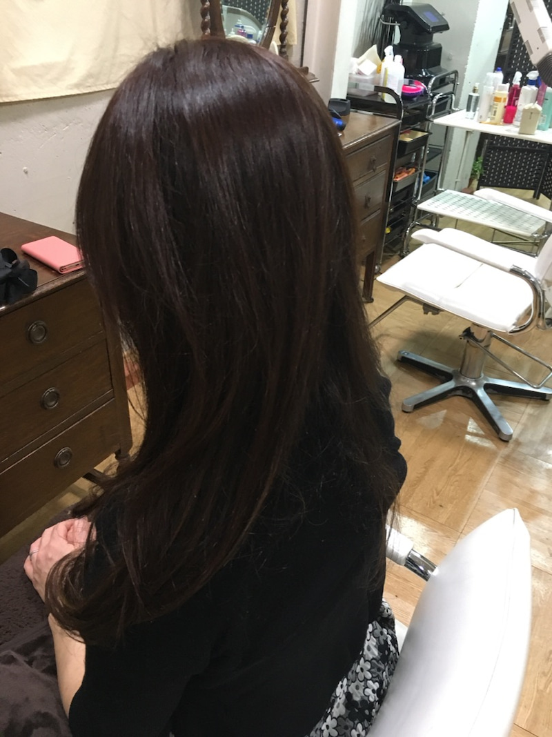 もう一枚。天使の輪ができてます。。。 基本的には3回の施術を行っていただくことをお薦めしています。カラーとの相性もいいので同時になさることもできますよ。 |