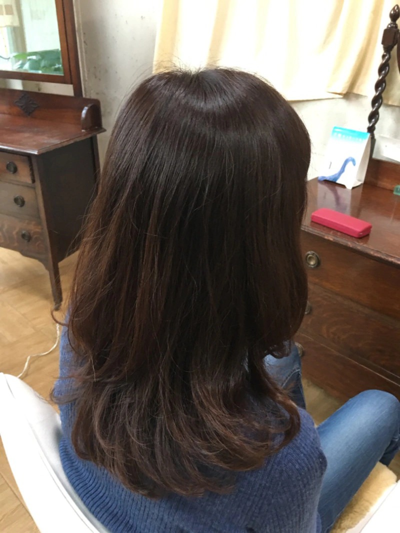 艶も出ていい感じになりました。 癖毛の方は今ネット予約でお得な割引の期間になっています。ご利用下さい。 |