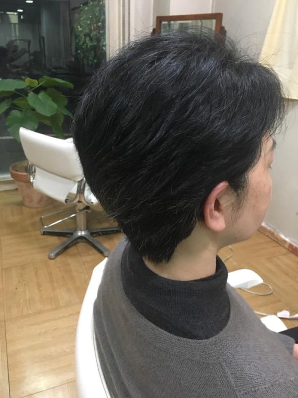 セニングは入れていません。 癖毛の方にはドライカットの方がご自宅でのセットが楽になります。 |